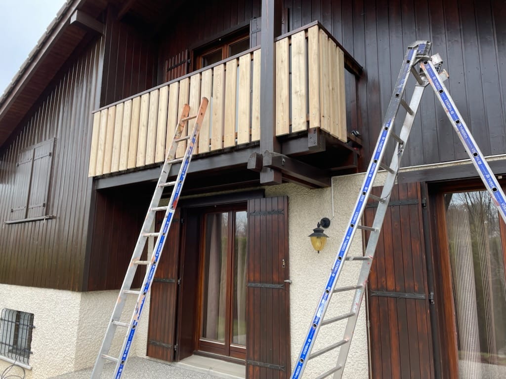 Nos experts sont intervenus àSévrier, chez un particulier, pour remplacer les barreaux du garde-corps de son balcon. Du vernis a ensuite été appliqué pour que les nouveaux barreaux s’intègrent parfaitement àl’apparence générale de la bâtisse.